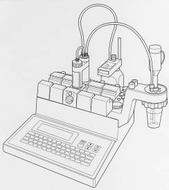 - ein Farb-Terminal dient als Zweitanzeige und zur Fernbedienung oder ein PC/Roboter kann mit dem Titrator Daten austauschen und