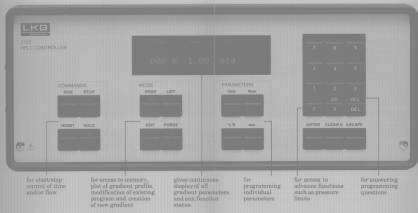 Up to 10 different programs can be stored in the memory and a link-file function permits automatic repetition of a particular gradient or successive recall of different gradients in a specified order. Combined with an autoloader, this feature enables fully automated methods development.