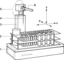 Manches Anwendungsprogramm erlaubt es, den AS-90 so zu programmieren, daß Sie Ihre Lösungsgefäße in einem laborüblichen Gestell Ihrer Wahl auf dem AS-90-Probentisch plazieren können. Die Gefäße müssen sich nur in Reichweite der Probenkapillare befinden, und das bestückte Gestell darf die Bewegungen des Probenautomaten nicht behindern.
