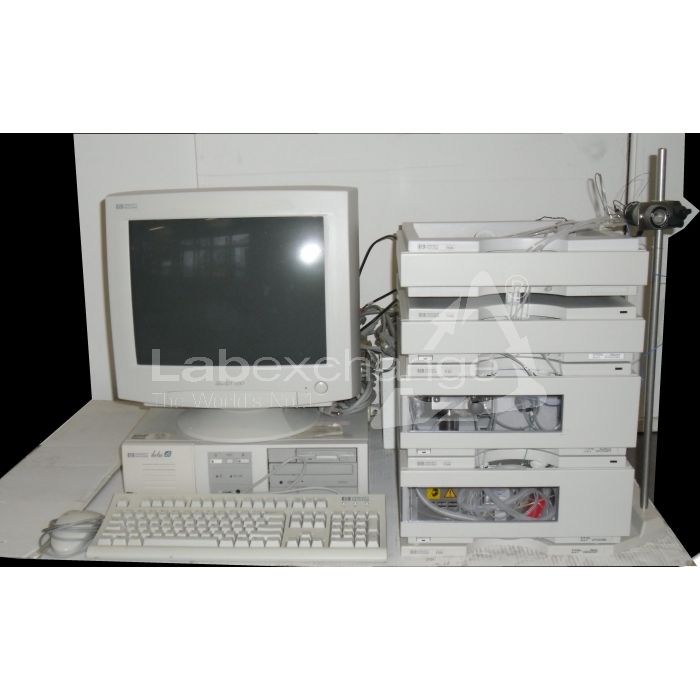 Agilent Système HPLC 1100. Avec pompe quarternaire G1311A. Degaseur G1322A. Injecteur manual G1328A avec boucleur de sample, 20 µL. Detecteur longuer d ondes variable G1314A avec cellule de flux. Ordinateur Pentium-1. Écran. Logiciel ChemStation Rev. A.05.02. Licence BL05072BE3. 110-240 V. 50/60 Hz. Signe CE