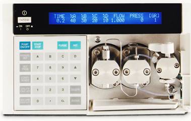 empfindlichen Substanzen kann die Pumpe auch im Kühlraum bei 4°C betrieben werden. Bei Verwendung salzhaltiger Eluenten verhindert der Einbau der Kolbenspülvorrichtung vorzeitigen Verschleiß.