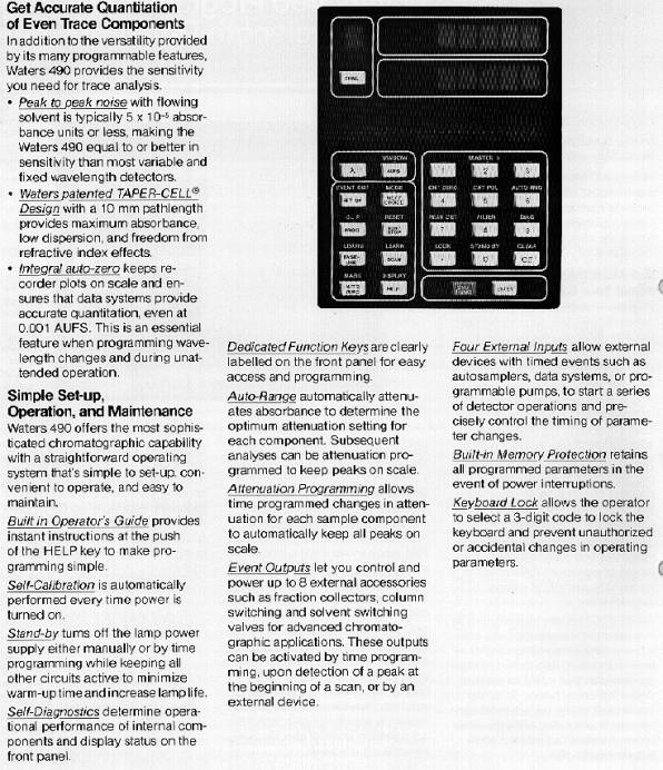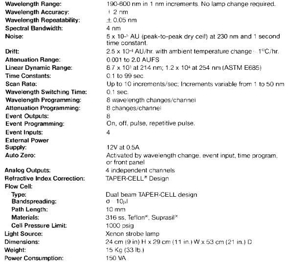 The 6000 psig operating pressure lets you take advantage of the speed and efficiency of all microparticulate columns. An automatic high pressure shut off mechanism protects your columns. The mechanically activated outlet check valve and real design gives greater reliability under any operating conditions, even when using volatile solvents such as hexane und methylene chloride. Advanced seal material and mechanical design aid in precise solvent delivery und significantly extend the life of the pump. A Plunger Wash Kit is also available to extend the life of the seals when performing buffered mobile phase applications.