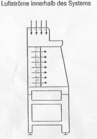 Die angesaugte Luft wird über Filter horizontal über die gesamte Arbeitsfläche geleitet.