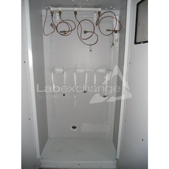 DÜPERTHAL Armoire de bouteille de gaz 7.35.000. Pour max. 3 bouteilles. Incl. Longes. Sans panneaux de gaz. 2 portes battantes, fermant à clé. Cabinet aspiré. Dimensions extérieur: 195x110x65 cm. Poids: 460 kg. Approbations: TÜV, GS, TRbF DIN, CE.
