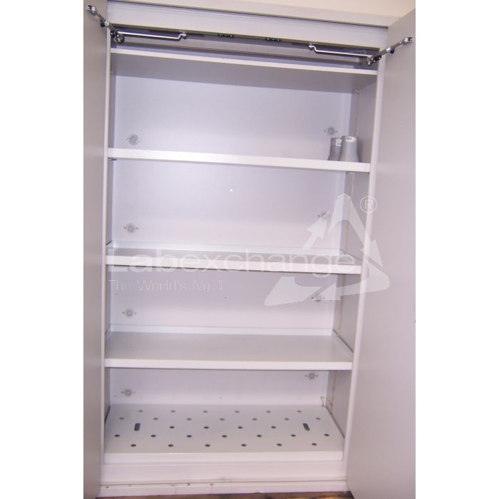 Düperthal Établis de sécurité 23-201260-401. Modèle 30. EN 14470-1. Dimension extérieures: 204x120x60 cm. 280 kg. 3 niveaus. Max arrangement dimension 35 L. Max charge par niveau de 75 kg. 2 portes à deux battants. Séparé fermé à clé. Inutilisé. À aspirer. Signe CE. Dommage en bôitier par le transport. AC: 2007