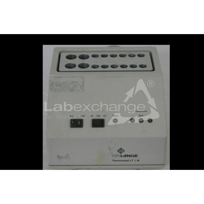 Der Thermostat LTG 037 gestattet das Erhitzen von Lösungen in Rundküvetten verschiedener Größe auf 100 bzw. 148 °C. Zur Aufnahme der Küvetten verfügt der Küvettenblock über 16 Öffnungen, von denen 12 für normale CSB-Küvettenteströhrchen und vier für größere Reaktionsgefäße vorgesehen sind, wie sie beim CrackSet und beim Chromküvettentest verwendet werden. Die gewünschte Temperatur und Heizdauer können über die Schalter 1 und 2 am Gerät eingeschaltet werden. Der LTG 037 ist mit einem Temperaturanzeigesystem ausgestattet. Bei Erreichen der Solltemperatur leuchtet die Sollanzeige (SOLL) auf. Abweichungen von dieser Temperatur zeigen die Leuchtanzeigen (+) oder (-) an, was eine Über- bzw Unterschreitung des Solls bedeutet.
