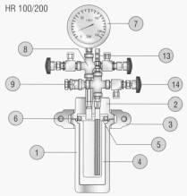 Zum Betrieb werden außerdem je ein Armaturensatz, ein Manometer und ein PTFE-Einsatz benötigt. In Verbindung mit HC4-Armaturen wird die Verwendung von Manometern mit Druckmittler empfohlen.