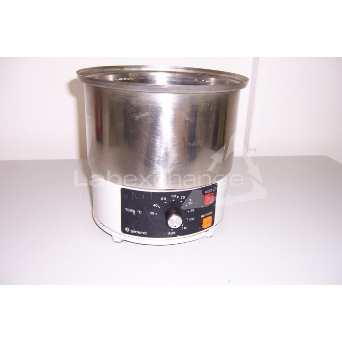 Gerhardt Bain d'eau SV 13. Temp: 110°C. 220 V. 50 Hz. 200 W. Modèle ronde. Dimension de bain: Dia 19x10 cm. Capacité 2,8 L. Est en acier.