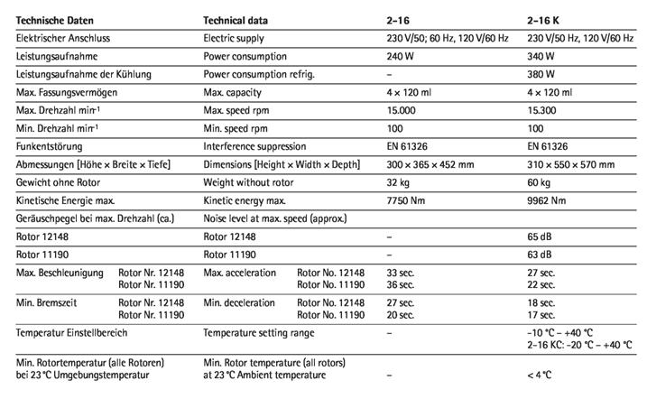 - Sedimentation in ausschwingenden Gefäßen bis 4 x 120 ml oder bis 20.000 x g im Winkelrotor