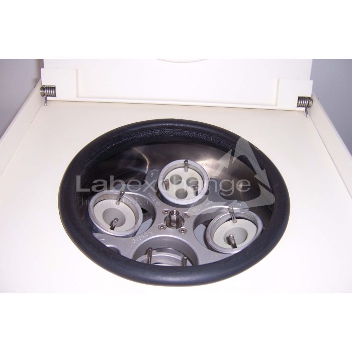 Sigma Centrifugeuse laboratoire 3 K 10. 220 V. 50 Hz. 1,4 kW. 5500 t/mn. Max. 864 g. 4-fois roteur 11133. 4 gobelets 13117. Chacune 2 insertions pour 1x 29x105 mm. 3x 16x105 mm. Indication digitale pour de la température, du temps et du vitesse.
