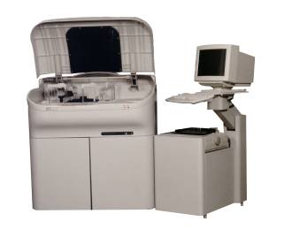 Features: Bar-coded reagent tracking, Automatic calibration and bottle changeover, Auto wake-up function, Online correlation, Accelerated reaction times, Application library, RS 232 Interface