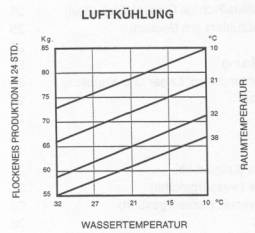 Die Tages-Eisproduktion wechselt mit den verschiedenen Umgebungstemperaturen, Wassertemperaturen und Standort der Maschine.
