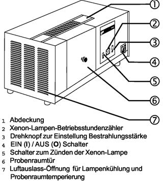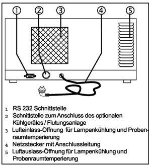 Lufteinlassöffnung 3 zur Xenon-Lampenkühlung und Temperaturregelung des Probenraumes,