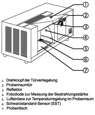 Im Probenraum und in der Probenraumtür befindet sich der Reflektor 3 und die Xenon-Lampe im Probenraumdach,