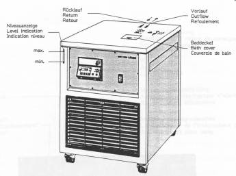 Der Badkessel aus Edelstahl rostfrei ist mit Polyurethanschaum entsprechend dem Arbeitstemperaturbereich isoliert. Alle Teile, mit denen die Temperierflüssigkeit in Berührung kommt, bestehen aus Edelstahl rostfrei, Kupfer oder im Arbeitstemperaturbereich beständigen Kunststoffen und Elastomeren (PVC, EPDM, NBR) und faserverstärktem Gummi.