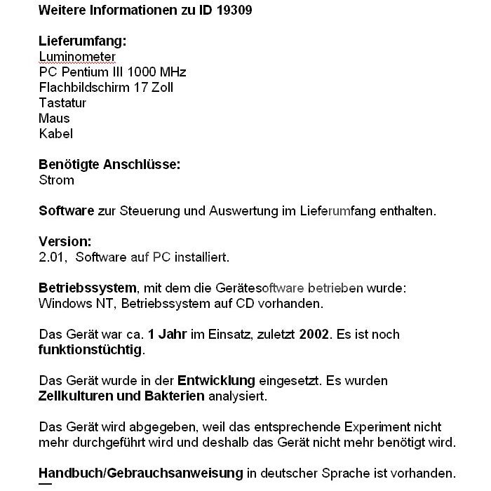 Responsable du contenu de l‘offre d’appareil est la société Labprocure GmbH, comme annonceur. Labprocure assume la responsabilité des offres annoncées ici ainsi que des photos et des textes d’offre inclus. Labprocure GmbH, Bruckstraße 58, 72393 Burladingen. |