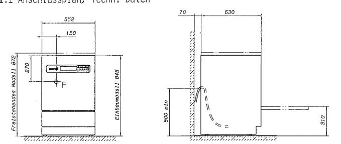 Anschlüsse links oder rechts ausserhalb der Maschine.