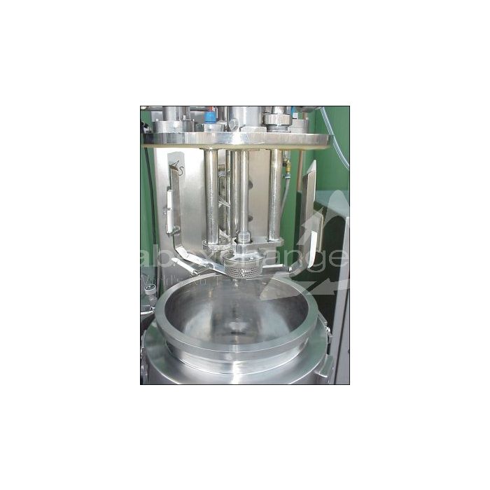 Open stirring vessel "Vacuum processvessel",Brogtec (former Brogli), type MH-20, no. 2094, new 1995, material stainless steel (1.4435/1.4436), capacity 26 L (useful 20 L), vessel sizes dia. 340 x 280 mm, dished bottom, flat top side, with cover, outlet dia. 50 mm, working pressure vac/2 bar, with jacket, working pressure vac/3 bar, with anchor stirrer, with homogeniser, with switchgear (dim. 1,0 x 0,5 x 1,7 m), floorspace 1,3 x 0,7 m, total height 2,0 m