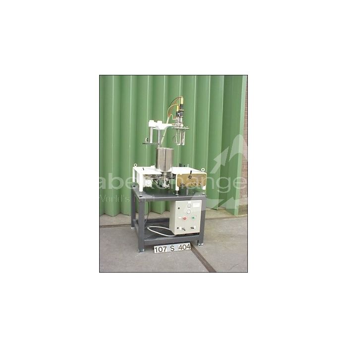 Open stirring vessel "Vacuum lab mixer with discharge press", Fillworth, no. 70-19-97A, new 1997, stainless steel, capacity 10 L, vessel sizes dia. 250 x 300 mm, flat top side, with cover, outlet dia. 20 mm, with anchor stirrer (0-47 Rpm), with dissolver stirrer (0-1230 Rpm), motor pneumatic, with switchgear, floorspace 1,0 x 1,0 m, total height 2,0 m