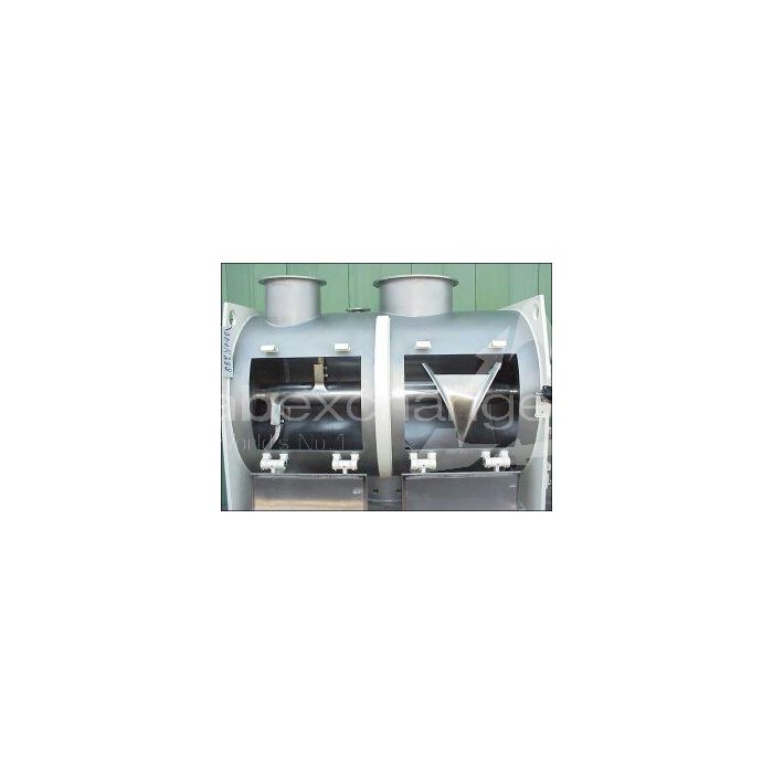 Loedige mixer, Morton, FKM 600 D, no. 23528 M, new 1987, stainless steel, capacity 600 L, trough sizes dia. 780 x 1250 mm, inlet dia. 350 mm + dia. 250 mm, inspection hatch 2 x 450 x 380 mm, outlet 240 x 180 mm, motor 18,5 KW, 415 V, floorspace 2,1 x 1,0 m, total height 1,4 m,- OVERHAULED -