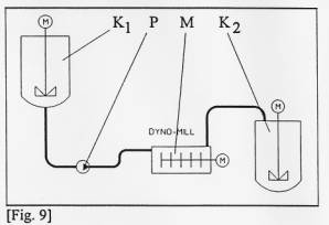 Mittels einer neben der Mühle plazierten Förderpumpe wird bei kontinuierlichem Betrieb das Mahlgut der DYNO-MILL zugeführt.