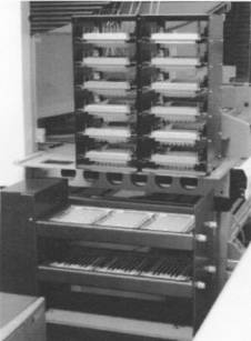 Die PCR wird in PCR-Cyclern der Firma MJ-Research durchgeführt. Insgesamt sind 4 Cycler zu einer Einheit zusammengefasst. Somit können gleichzeitig 4 Platten à 96 Wells bearbeitet werden.