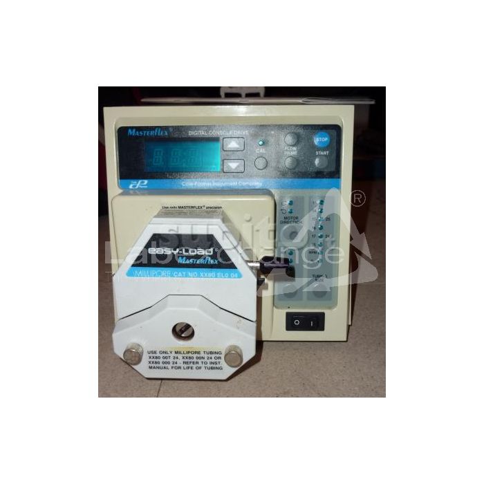 Masterflex Coleparmer Pompe péristaltique 7523-27. 10-600 t/mn. Dispositif était de trois ans en faveur de solutions aqueuses dans la R & D en usage. Avec tête Easy Load. AC: 2005.