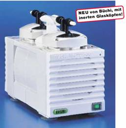 Die PTFE-Membranpumpe Büchi VAC V-500 weniger Unterhalt dank innovativen Glasköpfen und integrierter Switchbox .