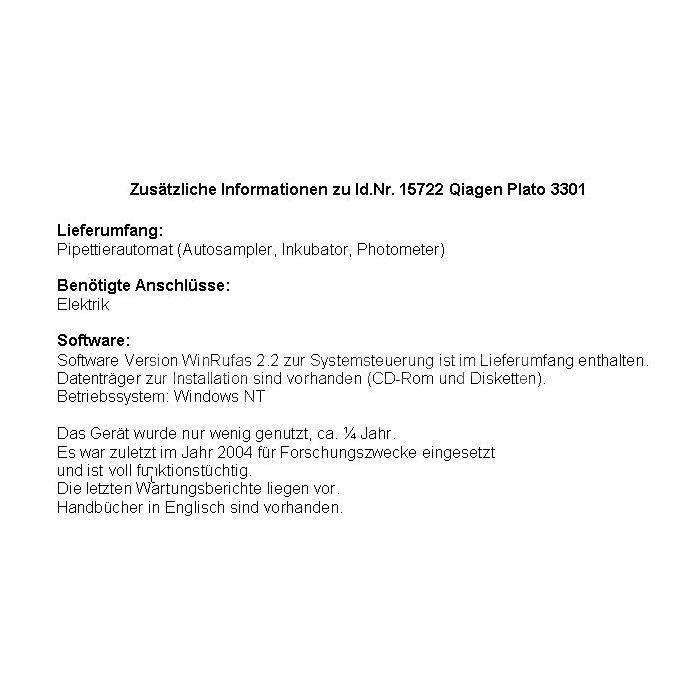 Responsable du contenu de l‘offre d’appareil est la société Labprocure GmbH, comme annonceur. Labprocure assume la responsabilité des offres annoncées ici ainsi que des photos et des textes d’offre inclus. Labprocure GmbH, Bruckstraße 58, 72393 Burladingen. |
