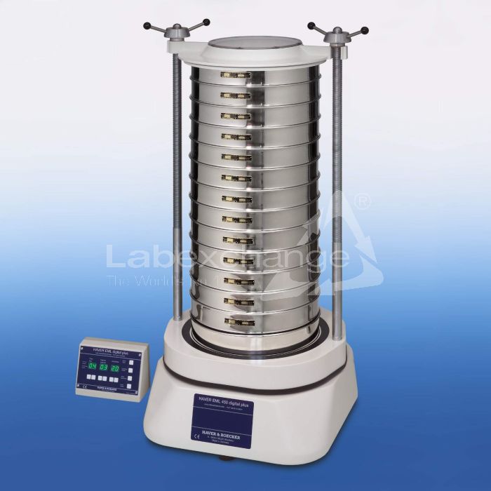 Die EML 450 kann bis zu 12 Analysensiebe, 400 mm Durchmesser, aufnehmen.