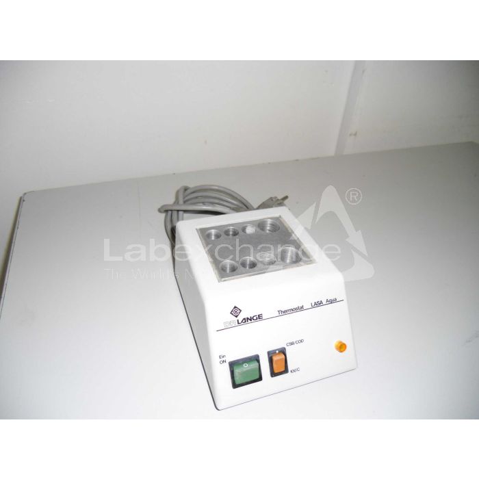 Hach/Lange Bloc de chauffage/Thermostat LASA Aqua. Type LTG 031. 220 V. 50 Hz. 200 W. Deux température réglable: 100°C/CSB. 6 trous à diamètre de 13,8 mm, 2 trous à dia. 20,7 mm. Profondeur de trous chacune 53 mm.