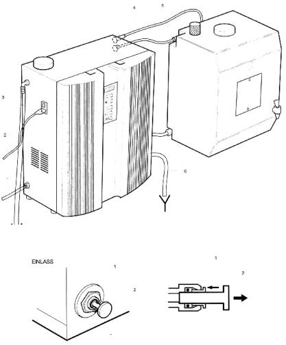 In der Nähe des Gerätes muß ein passender Abfluß vorhanden sein, der mindestens 8 1/min aufnehmen kann. Er muß tiefer als das Gerät Medica 30/60/100 liegen, damit das Überlauf– oder Abfallwasser abfließen kann (stetiges Gefälle),
