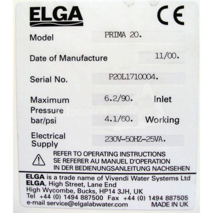 The PURELAB Prima product family can operate from a wide range of potable water pressures. For PURELAB Prima 7, 15 and 20 units, an optional integral boost pump can be specified where pressure is insufficient. PURELAB Prima 30, 60, 90 and 120 units have this boost pump built in as as a standard feature.