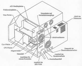 Temperaturkontrollierter Ofenraum, in dem gleichzeitig bis zu 8 Zellen extrahiert werden können
