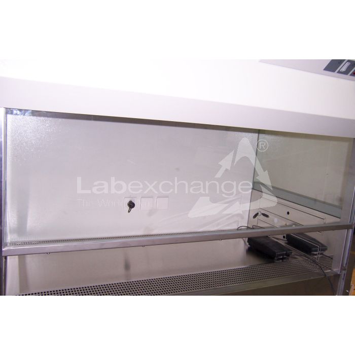 Heraeus Établis de securité Herasafe HSP 12. Corresponds DIN 12950 part 2, safety class 2. Protection de produit et personelle. 230 V. 50 Hz. 750 W. Dimension intérieur 55x120x63 cm. Surface de travail d'acier inoxydable. Bassin de collecte. Courant dans l'atelier de travail. Eclairage. Sur le châssis.