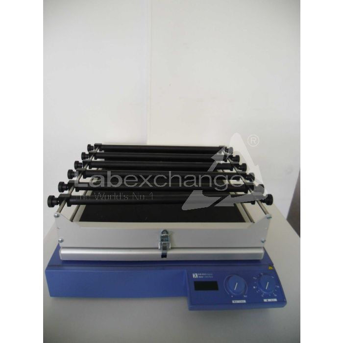 IKA Agitateur orbitaux KS 501 digitale. 230 V. 50/60 Hz. 75 W. Minuterie 0-60 min ou marche continue. 0-300 t/mn. Support 43x43 cm avec 6 galets tendeur. Signe CE. AC 2010. L état neuf
