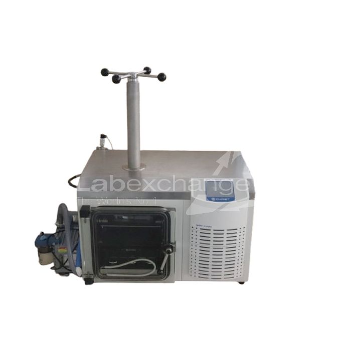 Lyophilisateur pilote Martin Christ Kompatker Epsilon 1-4 LSCplus. Capacité du condenseur : 4 kg de glace à -55 °C. Volume de la chambre : 40 L. Dimensions des étagères : 270 x 400 mm. Plage de température des étagères réglable : -40 °C à +60 °C.