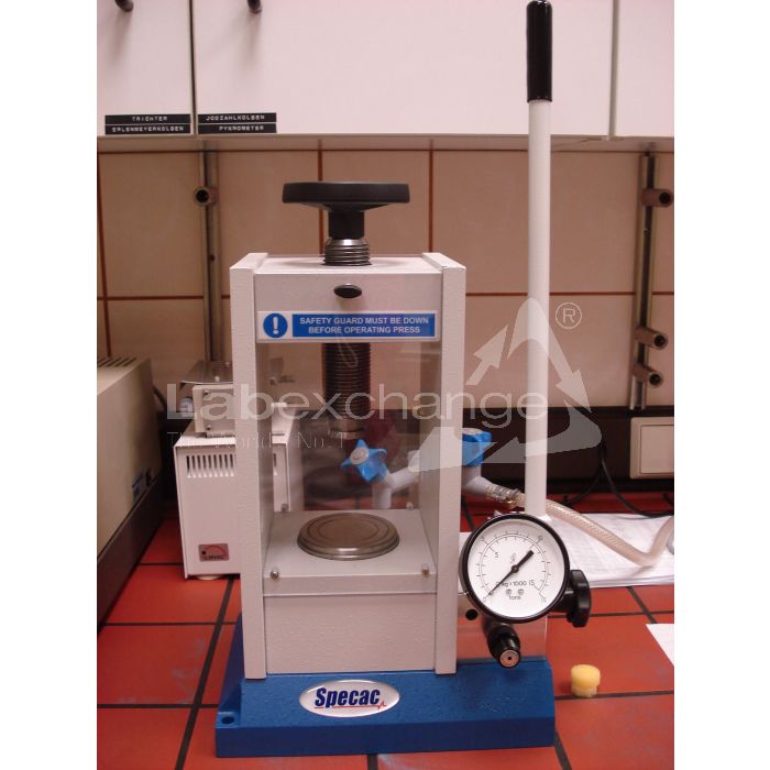 Hydraulic presses are essential if samples are to be prepared as halide discs. The dies containing the sample/halide mixture are placed into the hydraulic press and the required pressure is exerted. The die should be evacuated by means of a vacuum pump.