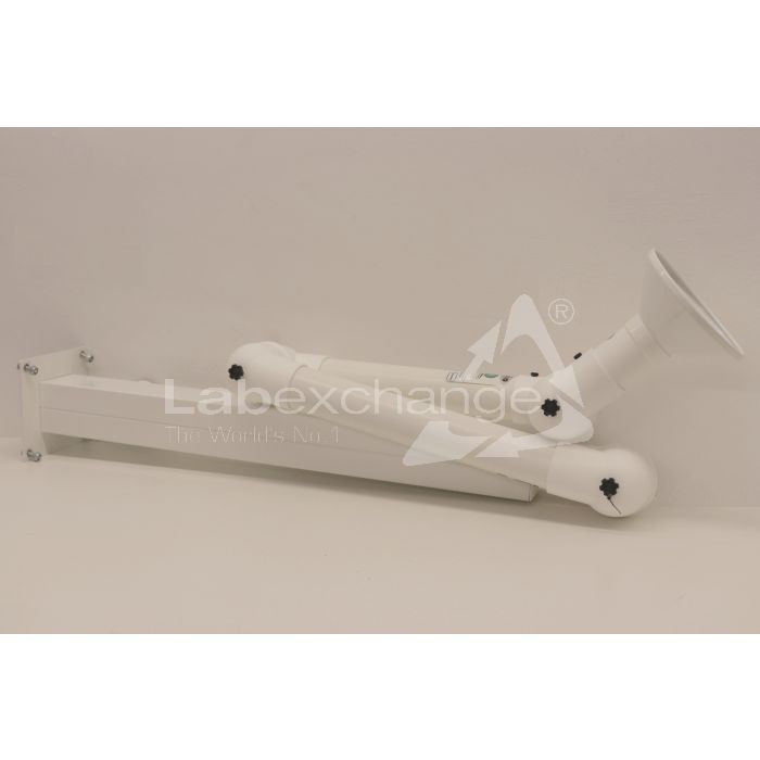 Alsident afzuigarm met 3 scharnieren Ø 75mm. Lengte 160cm. Afzuigbel Ø 20cm. Muurbeugel met montageplaat BxD: 20x20cm.