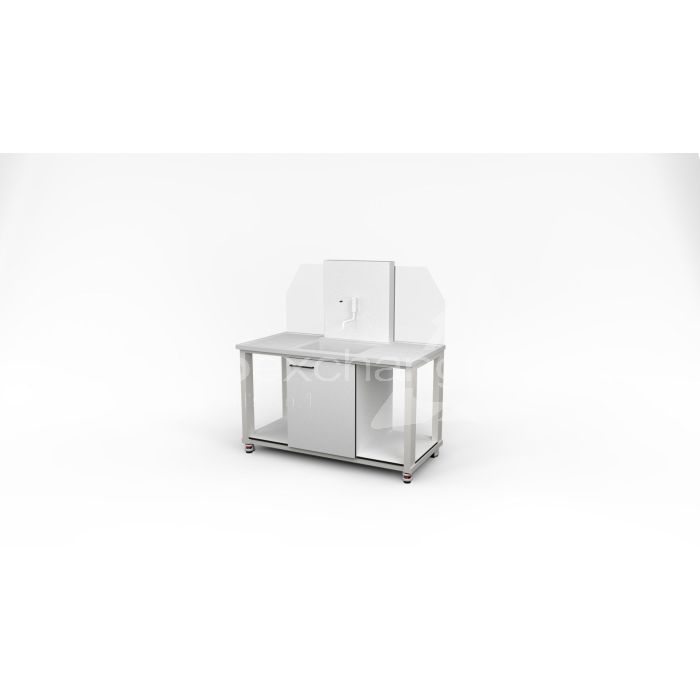 De spoelbak kan zowel vrijstaand worden gebruikt als snel en eenvoudig worden omgebouwd tot een laboratoriumspoelbak of een dubbele laboratoriumtafel met een voorlader met behulp van gestandaardiseerde elementen.