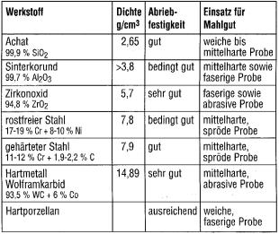 Die Mahlgarnitur besteht aus Mörserschale, Pistill und Schaber. Zur probenreinen Mahlung sind 7 verschiedene Materialien für Mörser und Pistill erhältlich.