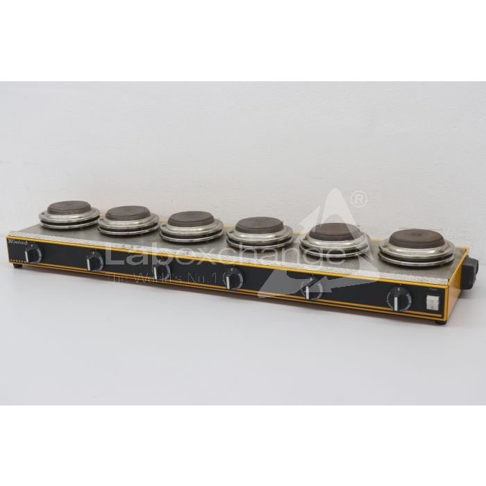 Flexibel einsetzbare Heizbänke mit Heizplatten 85 mm Ø. Jede der 6 Heizstellen ist einzeln stufenlos regelbar. Mit 2-poligem Netzhautpschalter und Kontrolllampe sowie Überstromschutzschalter für jede Stelle. Vielfältige Nutzungsmöglichkeiten durch gezielten Einsatz von Zubehör.