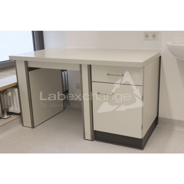 Tischplatte Kunststoff. Freistehendes, nivellierbares Stahlrohrgestell mit schwingungsfreier, grauer Steinzeugplatte 490/440mm (Dicke 40 mm).