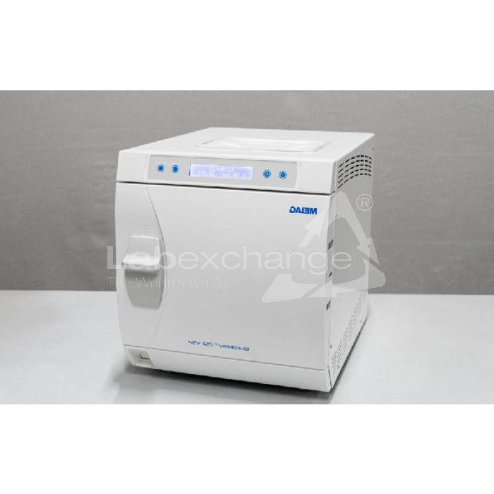 De Melag Euroklav 29-VS+ autoclaaf beschikt over vier programma's voor het steriliseren van verpakte en eenvoudige holle instrumenten (bijv. scharen, naaldhouders, klemmen, enz.), evenals textiel, zelfs verpakt. Uitgerust met een krachtige vacuümpomp, wordt vóór de sterilisatie een eenvoudig voorvacuüm gecreëerd om ervoor te zorgen dat alle lucht volledig uit de verpakking en het inwendige van de instrumenten wordt verwijderd. De autoclaaf heeft zowel de Bowie & Dick- als de Lekt-test doorstaan. Het apparaat verkeert in nieuwstaat. Technische specificaties: Voltage: 230 V, Vermogen: 2100 W, 4 legplanken, Temperatuurbereik: 190 °C. Buitenafmetingen (B) x (D) x (H): 42,5 cm x 61 cm x 49 cm. Kamergrootte/-volume: 25 cm x 35 cm lang/17 l. Gewicht: 42 kg